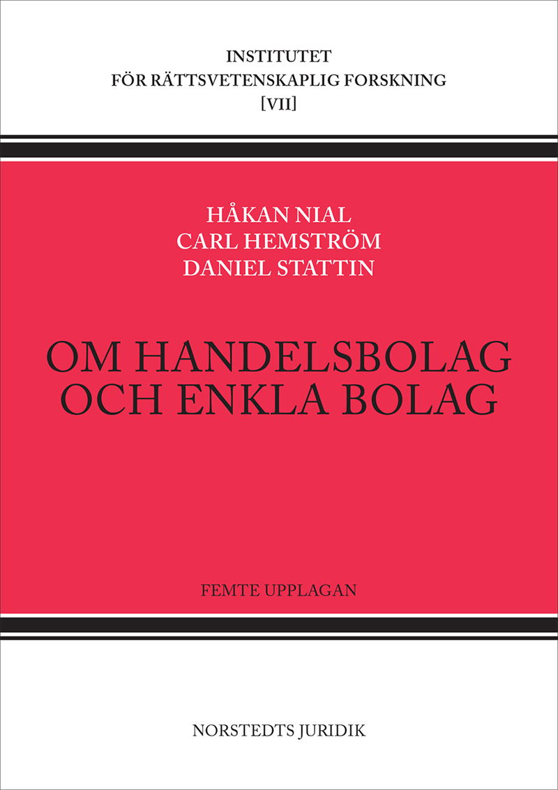 Denna bok innehåller en systematisk redogörelse för reglerna om handelsbolag, kommanditbolag och enkla bolag och därtill ett kort avsnitt om tysta bolag. I bokens första huvudavdelning behandlas bland annat bolagsbegreppet samt gränsdragningen mellan bolag och bolaget mer eller mindre näraliggande rättsfigurer. Den andra huvudavdelningen avser handelsbolaget. Här behandlas bolagets bildande, bolagets inre rättsförhållanden, rättsförhållandet till tredje man, förändringar i delägarkretsen samt bolagets likvidation och upplösning. I tredje avdelningen behandlas nyssnämnda frågor vad avser kommanditbolaget. Bokens fjärde avdelning gäller det enkla bolaget, bland annat rättsförhållandet mellan bolagsmännen, om egendomsförhållandena bolagsmännen emellan liksom i relation till olika kategorier av tredje män och slutligen om bolagets likvidation och upplösning.